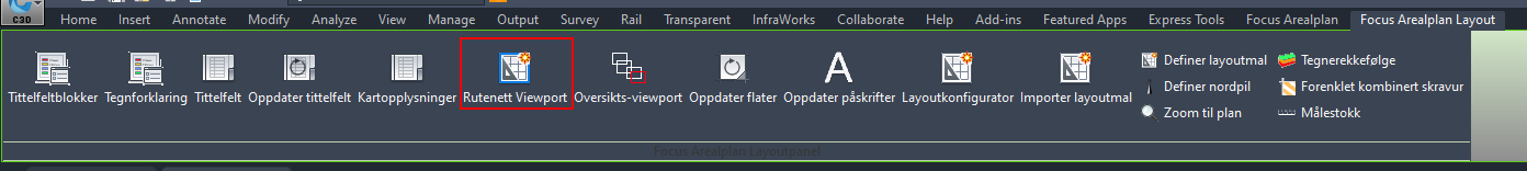 Tegner rutenett for wievport.Rutenett tegnes opp på nytt ved bytte mellom MSPACE og PSPACE når man står i en layout. Innstillinger for rutenett finnes i propertypaletten for rutenettet.