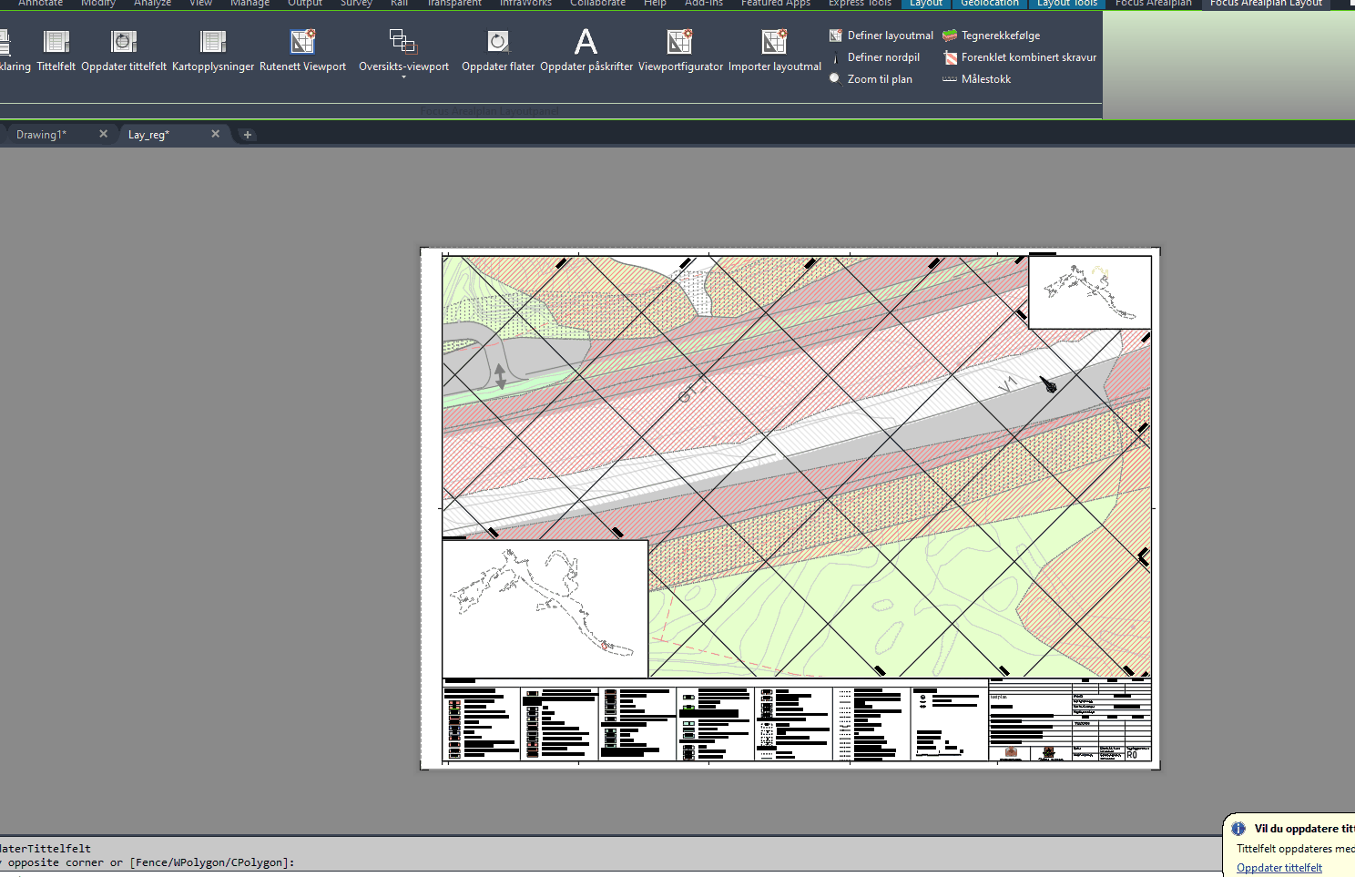 Konfigurer layouter med innstillinger for skala, vinkel, om skravur skal beregnes automatisk og om programmet skal benytte forenklet representasjon for kombinert skravur