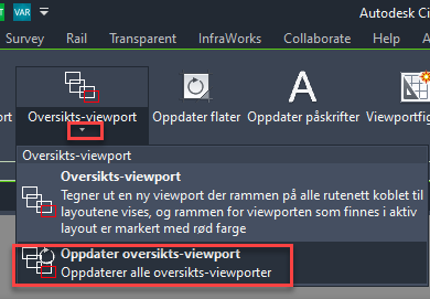 Dersom man lager nye layouter som inneholder oversiktsviewporter, man man oppdatere oversiktsviewportene med denne funksjonen, og sørge for at alle layouter blir oppdatert.