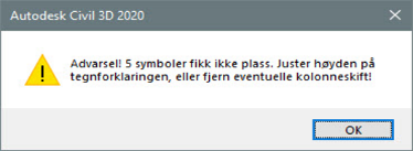 Under ses en advarsel som genereres når ikke alle objektene som finnes i planen får plass i tegnforklaringen.