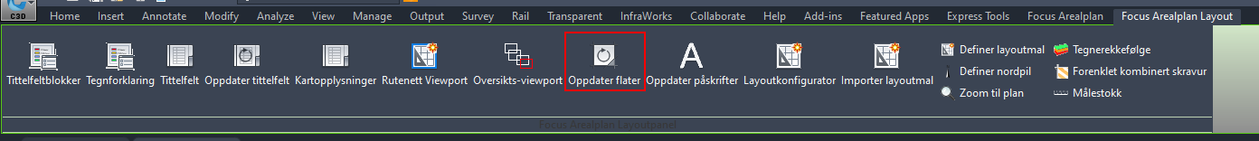 Dobbeltklikk inne i en viewport og kjør "Oppdater flater" for å sørge for at skravurskala blir synkronisert med annotation scale i tegningen