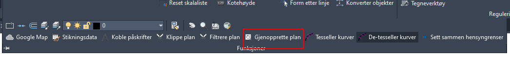 Gjenoppretter plan etter eksport til AutoCAD eller formål som er eksportert