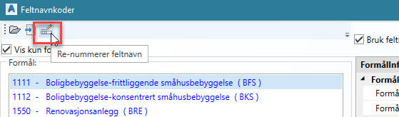 Det er også mulig å endre nummereringen med funksjonen "re-nummerer feltnavn":